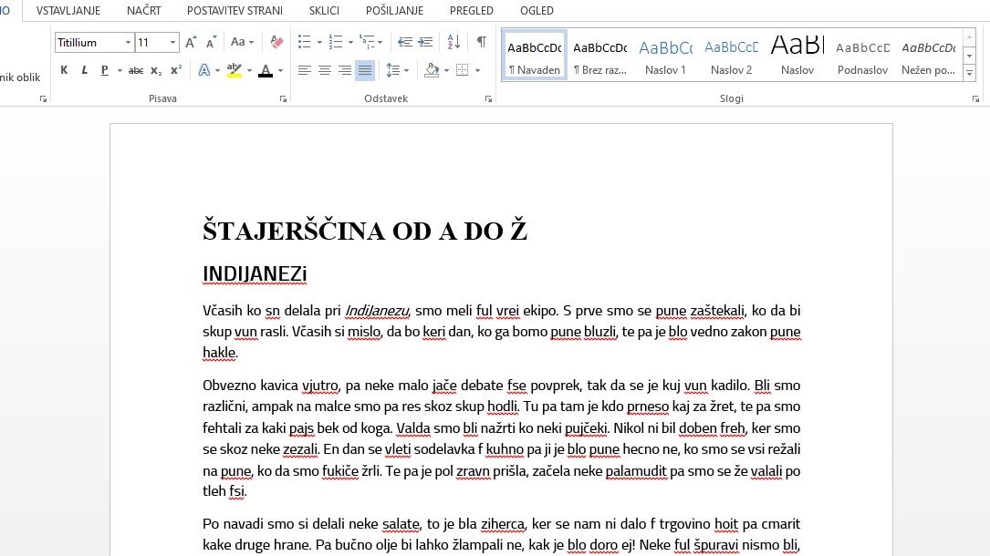 Včasih ko sn delala pri IndiJanezu, smo meli ful vrei ekipo. S prve smo se pune zaštekali, ko da bi skup vun rasli. Včasih si mislo, da bo keri dan, ko ga bomo pune bluzli, te pa je blo vedno ...