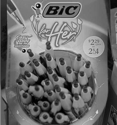 Ni treba biti ravno zunanji opazovalec, da uvidimo, da naša patriarhalna, kapiralistična družba izjemno rada vsiljuje binarno opozicijo moško-žensko, kar se odraža na številnih ravneh. Primer: Amazon odslej ponuja kulice za ženski spol znamke BIC. Kakopak so na voljo v rožnati in vijolični barvi, bojda pa nežnejši spol z njimi lahkotno drsi po papirju. Še dobro! Očitno so dekleta doslej molčala in tiho trpela z robustnimi, težkimi pisali, narejenimi za močno, moško roko.