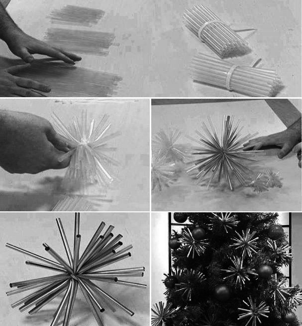 “ MNOGI ZAPRAVIJO VELIKO DENARJA ZA DEKORACIJE IN OKRASITEV BOŽIČNEGA DREVESCA. ČE NIStE TE SORTE PRIPOROČAMO NAKUP SLAMIC, KI JIH PREPROSTO POSPREJATE s SREBRNIM ALI ZLATIM LAKOM in SPNETE Z VRVICO, DA NASTANE ZVEZDA”
