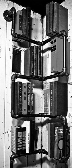 IZ STARIH CEVI NAREJENO STOJALO ZA KNJIGE - ZA MODEREN, INDUSTRIJSKI VIDEZ.