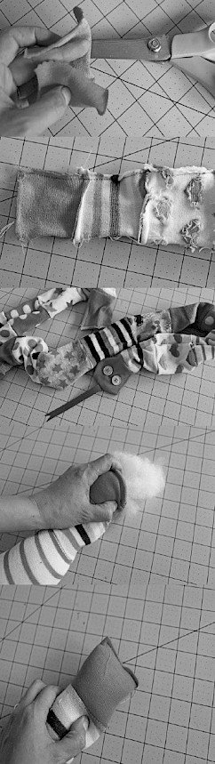NOGAVICE, KI SO IZGUBILE SVOJ PAR, ZBIRAJTE, SEŠIJTE, NATO PA NATLAČITE Z VATO. Z NASTALO KAČO RAZVESELITE KAKŠNEGA OTROKA.