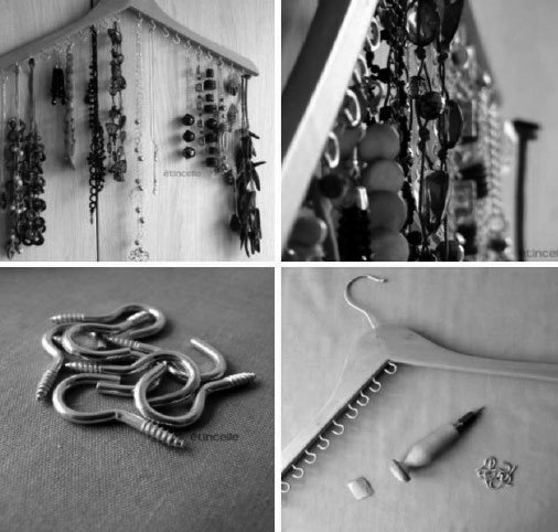 GOTOVO IMATE DOMA KAK OBEŠALNIK ODVEČ. Z KAVLJASTIMI ŽEBLJI GA LAHKO SPREMENITE V OBEŠALO ZA VERIŽICE.