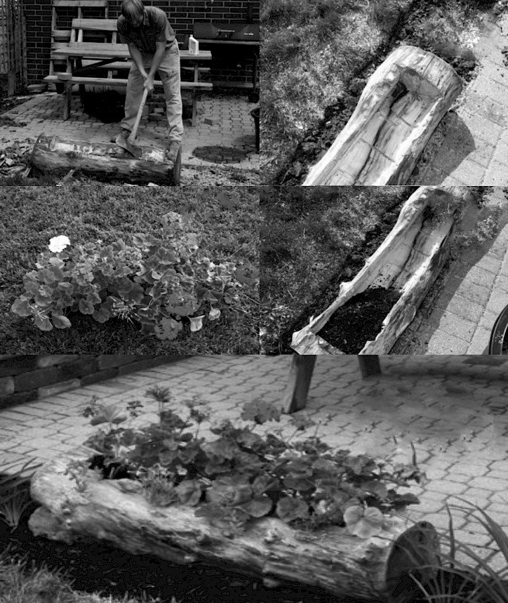 Če vam je letošnji žled uničil kakšno drevo, MU DJATE možnost, da zažari v drugačni podobi. Potrebujete deblo, zemljo, poljubne rože za zasaditev in seveda močne roke, ki bodo deblo izdolble.