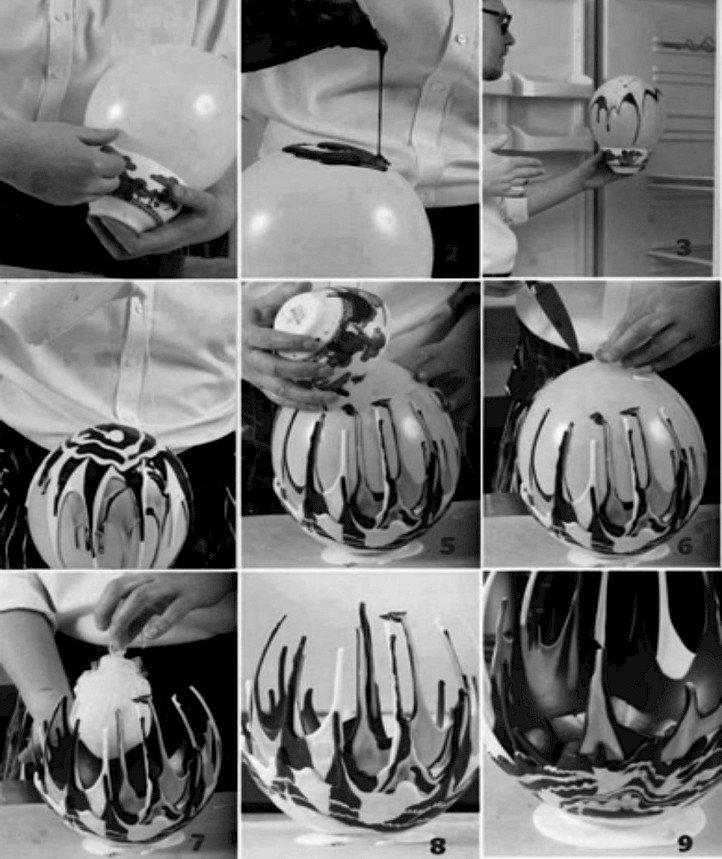 Za to sladko mojstrovino potrebujete le balon, čokolado, ki ste jo prej stopili in manjšo posodo na katero boste postavili balon V HLADILNIKU