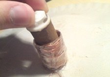 - Rdečo in belo žičko zvijte na en konec tuljave, na drugega pa navijte ničlo