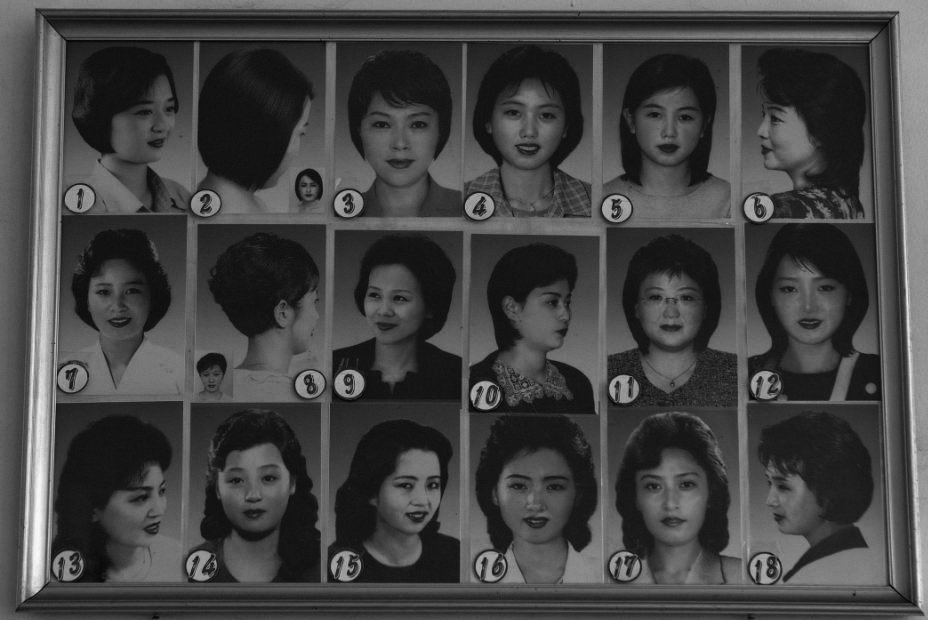Ne, Severno Korejke pač ne boste videli posrižene na Beyonce, Madonno ali Natalie Imbruglio. Ženske so namreč v Severni Koreji obsojene na osemnajst konformističnih pričesk. V socialističnem duhu se tako že na daleč vidi, da so ženske Korejke, glede na pričesko pa je jasno tudi ali gre za poročeno ali neporočeno žensko. Nič bolj niso agoniji izbire prepuščeni moški, ki imajo na voljo deset pričesk. Če mislite, da gre za deset raznolikih pričesk, si oglejte fotografijo - razlike so namreč minimalne, ključ je v detajlih, ki se odražajo v krivini nad čelom, kotom pod katerim se lasje dvigajo z glave in lokom nad glavo.Moški morajo svoje lase striči vsakih 15 dni, dolžina pa nikakor ne sme presegati 5 centimetrov. Tisti, ki si drznejo postriči drugače so javno osmehovani in celo kaznovani.