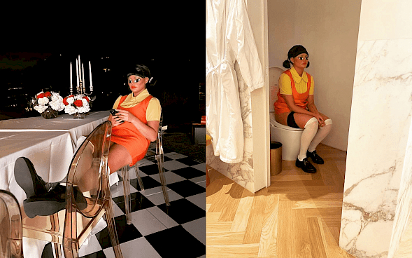 Jimmy Donaldson ni edini, ki je povzel (in prevzel) vizualno identiteto Squid Game brez globlje obravnave njenih tem in s tem v očeh mnogih opazovalcev zgrešil njeno bistvo. Zvezdnica Chrissy Teigen se je znašla v godlji, ko je na svojih omrežjih objavila fotografije zabave, ki sta jo z možem Johnom Legendom priredila za svoje slavne prijatelje. Par je svojo hišo spremenil v prizorišče s kulisami in rekviziti, ogromnimi prašički z denarjem in celo pogradi, na katerih v seriji spijo tekmovalci. Povabljenci so bili oblečeni v zelene trenirke, rezervirane za igralce, roza kostume stražarjev pa so si nadeli natakarji. Teigenova je posnemala robotsko lutko iz prve igre v seriji, medtem ko se je Legend prelevil v enega izmed vipovcev.