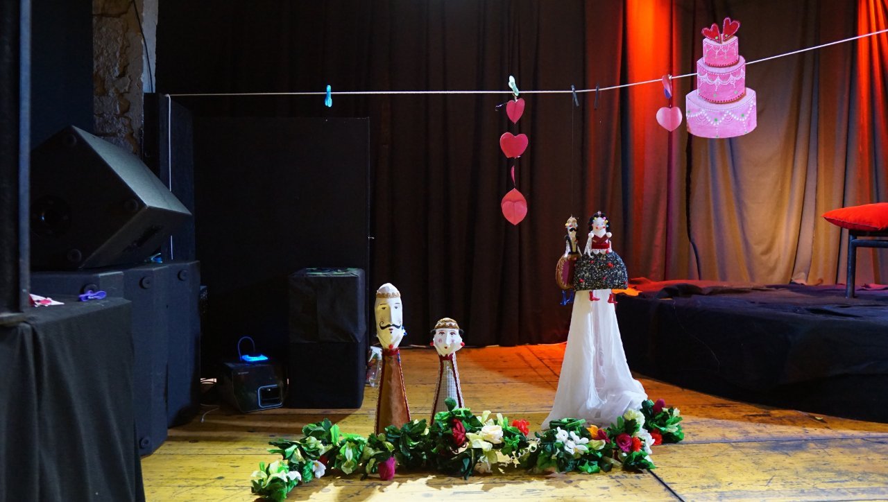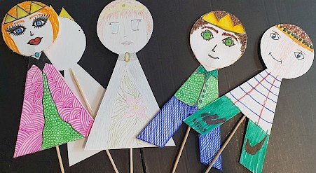 V času pavze med prvo in drugo predstavo smo organizirali kreativno delavnico oziroma ustvarjalnico. Skupaj smo izdelovali lutke na tematiko prve predstave: otroci so imeli priložnost ustvariti svojo papirnato kraljično ali kraljeviča na paličici ob pomoči animatorjev društva. Obenem so se še okrepčali s svežo limonado.