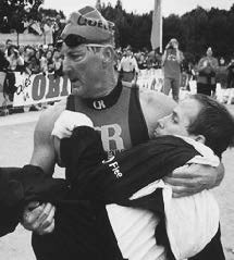 “Ni šans!” so bile besede iz ust organizatorja teka. Rick ni bil samostojni tekač, prav tako pa ni sodil v kategorijo klasičnega vozičkarja. Kljub vsemu sta se oče in sin pridružila masi in preprosto tekla. Leta 1983 sta se naposled tudi uradno udeležila teka, po tem, ko sta prejšni maraton tekla tako hitro, da sta dosegla kvalifikacijski čas za naslednjega. Potem pa je nekdo predlagal: “Dick, zakaj pa ne bi poskusil triatlona?” In Dick je poskusil. Do danes sta skupaj doživela 212 triatlonov, vključujoč petnajst-urni t.i. Ironman tek na Havajih. Mora biti kar frustrirajoče, da te na triatlonu prehiti starejši moški s culo v kateri ima sina, kajne? Potem je nekdo Dicku prišepnil: “Si že poskusil, kako ti gre, če bi tekel sam?” “Ni šans,” je odgovoril Dick, ki je vse to počel le zavoljo občutka, ki ga ob tem doživlja njegov sin, zavoljo smeha na sinovem obrazu ob plavanju, teku in kolesarjenju. Letos je Dick star 65, Rick pa 43 let. Bostonski maraton sta končala na 5083. mestu od več kot 20.000 prijavljenih. Njun najboljši čas? Dve uri in 40 minut leta 1992 - kar je 35 minut več kot svetovni rekord - ki pa ga ima moški, ki ob teku ne nosi ali potiska svojega sina.