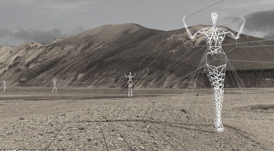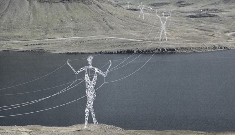 Gigantski človeku podbni električni drogovi so nastali kot ideja, da se poživijo grede komunalne objekte, ki kazijo vulkansko pokrajino v Islandiji.