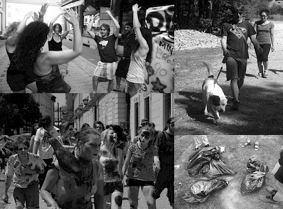 Družabno-zabavne so bile Flash mob akcije, ki so someščane vabile k participaciji oz. so želele vzbuditi reakcijo. Skupina mladih je v sprintu popadala na tla in nepremično obležala. Radovednost in zanimanje je požela tudi akcija, kjer je skupina prostovoljcev gledala na streho stavbe, kot bi se tam nekaj dogajalo. Mimoidoči so se ustavljali in skušali tudi sami ugotoviti kaj se dogaja. Tabor se je zaključil z za KD MC IndiJanez zdaj že tradicionalnim Zombie Walkom (pohodom zombijev). Prostovoljci so bili že tekom tabora priča delavnicam maskiranja pod taktirko Eve Bračič. V petek okoli poldneva so se namaskirani v Zombije, raztrgani in politi s krvjo, opravili na pohod po mestu Maribor.